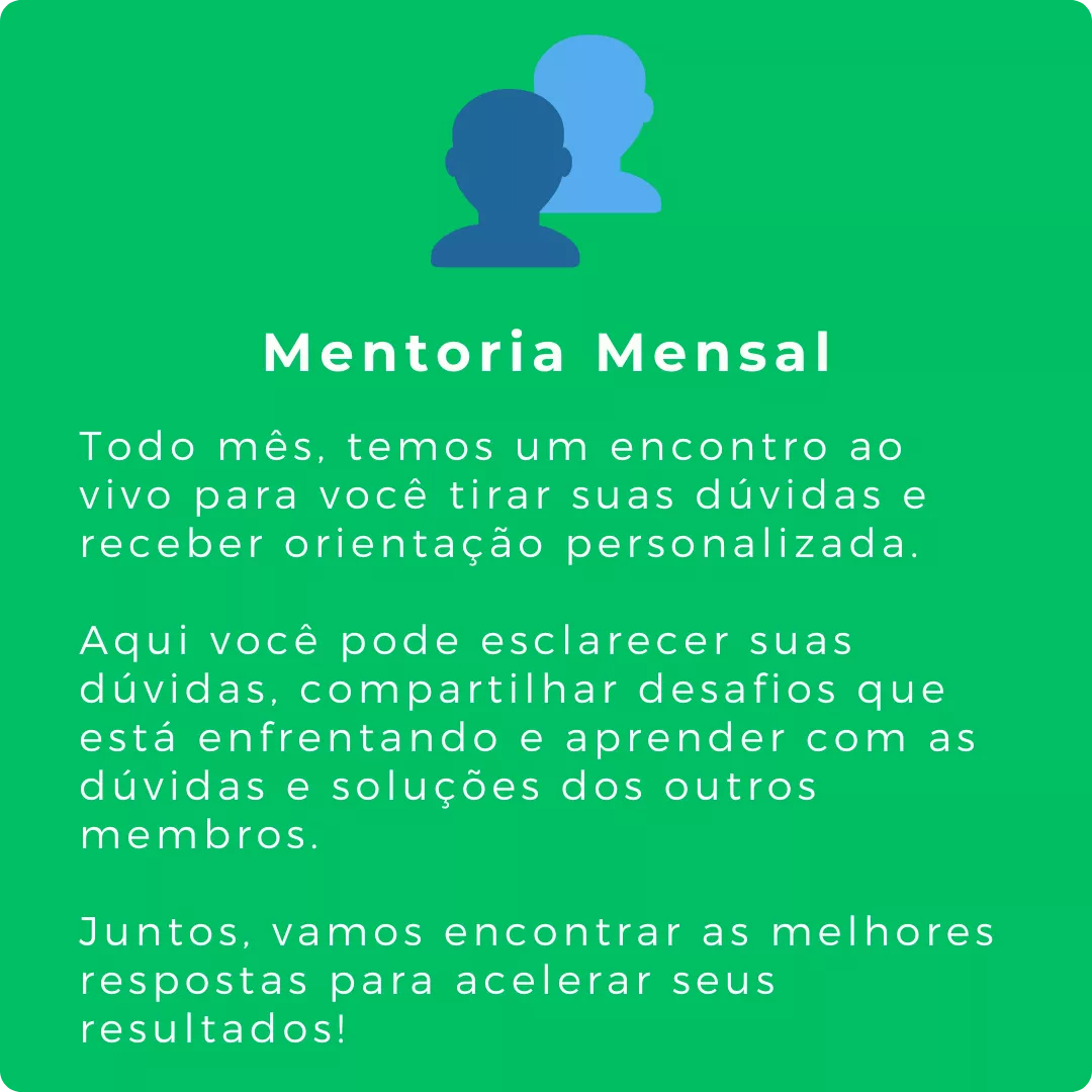 Não. Mensalmente temos um encontro de mentoria em grupo que é feito ao vivo. Após o encontro ao vivo este também fica gravado para toda vez que você quiser acessar. O restante do conteúdo é gravado. Mas sempre que você tiver qualquer dúvida, poderá utilizar o espaço de dúvidas para que nossa equipe responda para você.