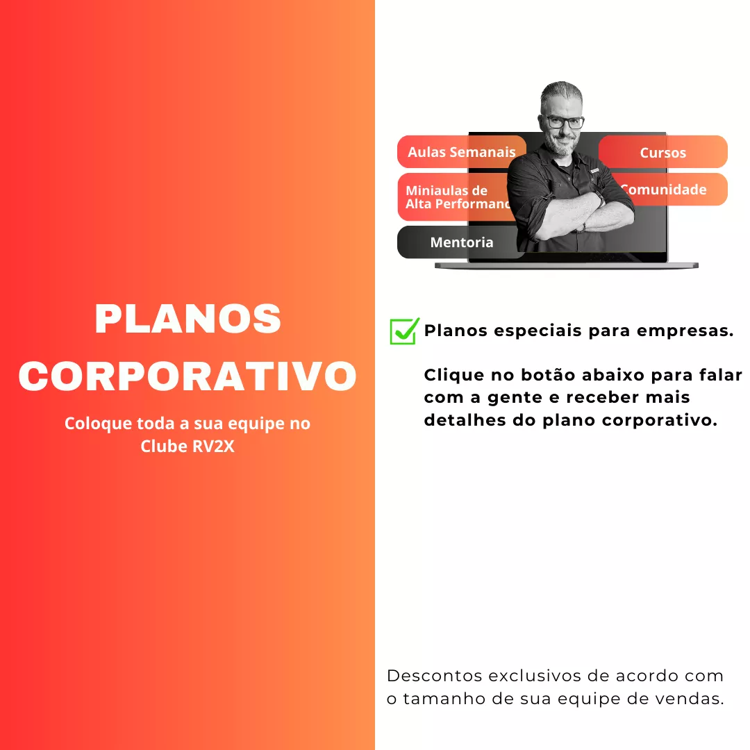 O RV2X é um clube online exclusivo para vendedores B2B, projetado para acelerar suas vendas e transformar sua carreira.É o único lugar onde você encontrará tudo o que precisa para uma transformação profissional completa.