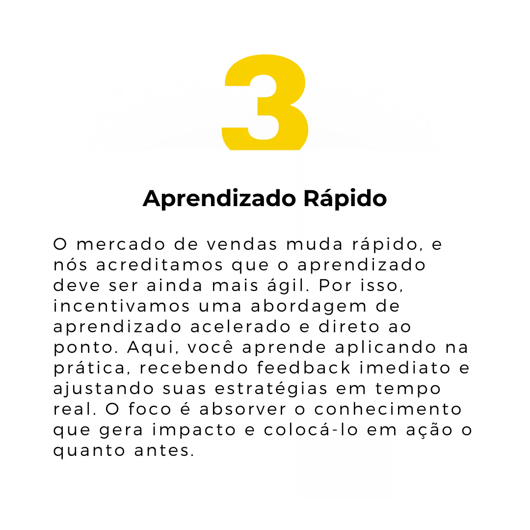 Fazemos isso trabalhando com foco concentrado no tema "alta performance comercial", a partir do trabalho direto com os gestores comerciais e suas equipes de vendedores, a fim de acelerar o crescimento de nossos clientes, alcançando resultados nunca antes imaginados.