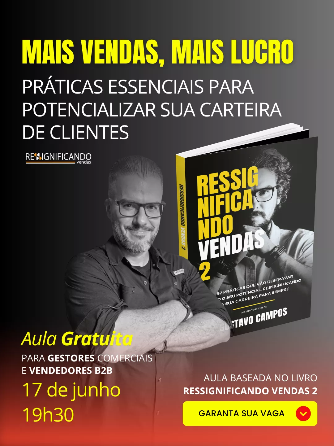 Aula gratuita (AO VIVO) baseada no livro Ressignificando Vendas 2 do Gustavo. A aula vai abordar 7 práticas essenciais para quem quer liberar seu potencial para acelerar vendas e faturar mais alto.