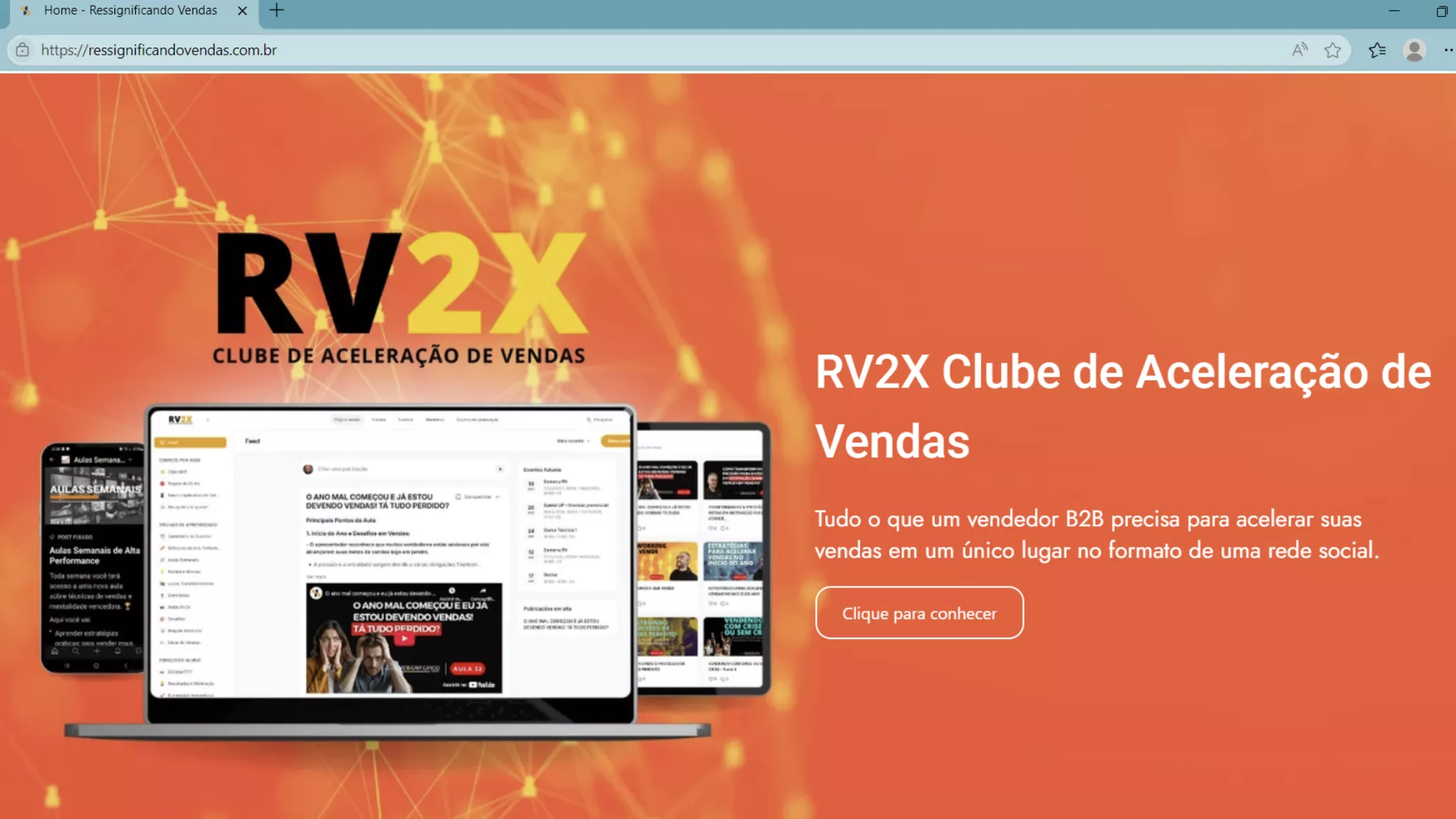 O RV2X é o clube online de aceleração de vendas do RV. É a primeira rede social de vendas B2B. O RV2X entrega semanalmente um conteúdo exclusivo sobre os mais diversos aspectos das vendas B2B para vendedores e gestores comerciais que querem se desenvolver profissionalmente e acelerar suas vendas.