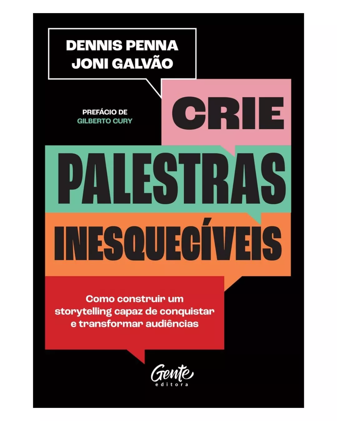 Foi a partir dessa inquietação e busca pelo storytelling perfeito que nasceu o Crie palestras inesquecíveis, fruto da união de Joni Galvão e Dennis Penna, especialistas quando o assunto é cativar a atenção de seus espectadores. Aqui, eles revelam lições importantíssimas que podem ser seguidas por todos os profissionais que discursam em público, garantindo apresentações fora de série, que expandem a consciência e ganham espaço na memória de quem estiver na plateia.